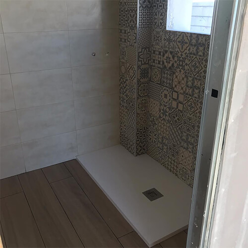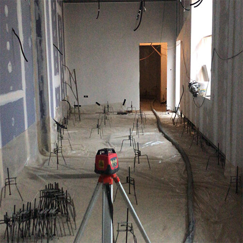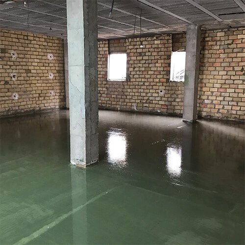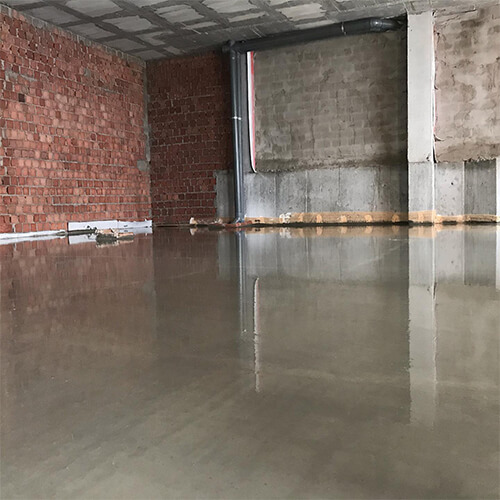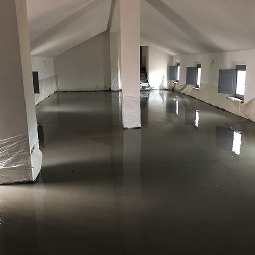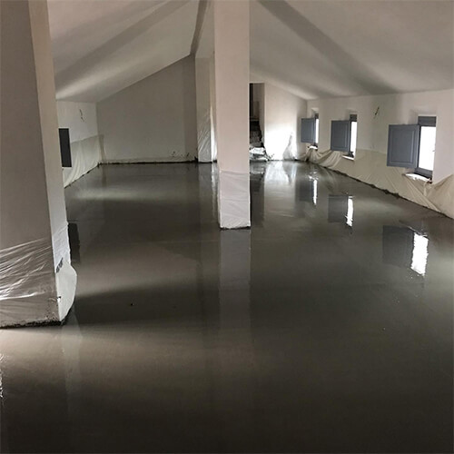 Aplicamos mortero cementoso autonivelante de fraguado normal para recrecidos.